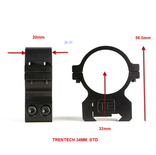 TRENTECH 34MM DOVETAIL SCOPE RINGS – DOUBLE SCREW TYPE - BLACK